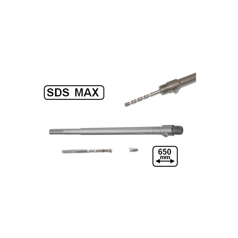 Barra filettata per fresa/frese carotatrici SDS MAX 650mm con attacco centrale per punta guida in widia (in dotazione)