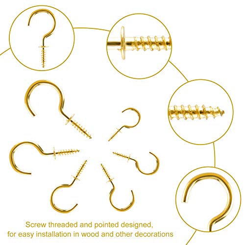 ASTARON 75 pezzi multi-misura Ganci Avvitabili, Ganci da Soffitto in Metallo Ganci a Vite in Ottone Ganci a Tazza Avvitati, Oro