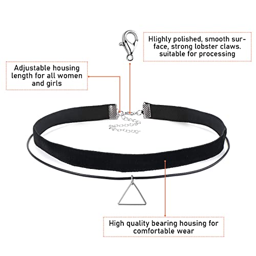 【Abbinamento di Stili Multipli】 Il girocollo con collana girocollo nera da donna è realizzato in pelle di velluto e lega di metallo, comodo e durevole da usare. Ogni collana girocollo nera è in stile tatuaggio, pizzo, henné, steampunk, nastro, goth, punk rock, a strati e altro ancora. Puoi anche creare il tuo stile aggiungendo fascino
