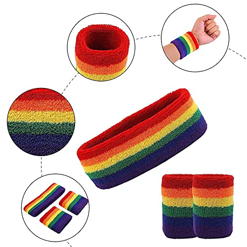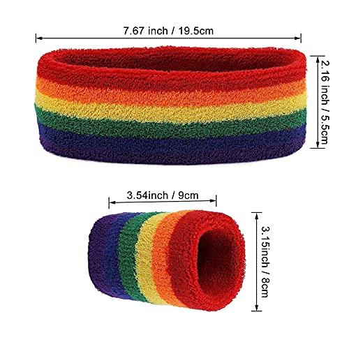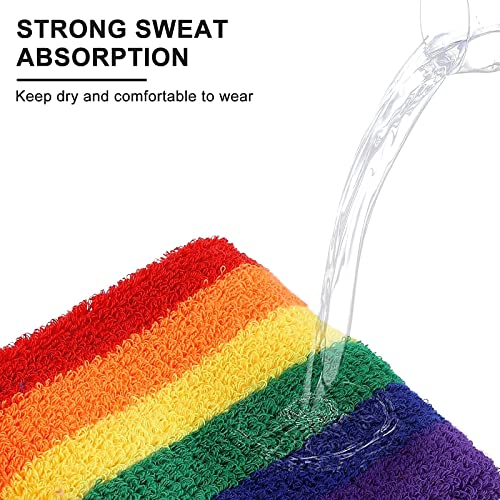 ASTER 3 Pezzi Fascia per il Sudore Sweatband Arcobaleno Fascia per il Sudore Arcobaleno Polsino Colorato Cotone fasce per il sudore a righe Fascia Sportiva per Uomo e Donna Basket Tennis Allenamento