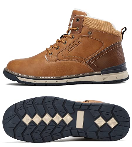 ASTERO Stivali Neve Uomo Invernali Scarpe Foderati Caldi Stivaletti Trekking Antiscivolo Outdoor Scarponcini 41-46EU(Giallo,Taglia 45)