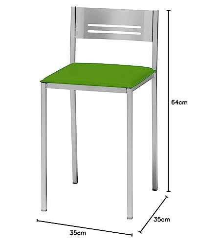 ASTIMESA Due sgabelli da cucina con schienale in ecopelle verde, altezza seduta 45 cm.