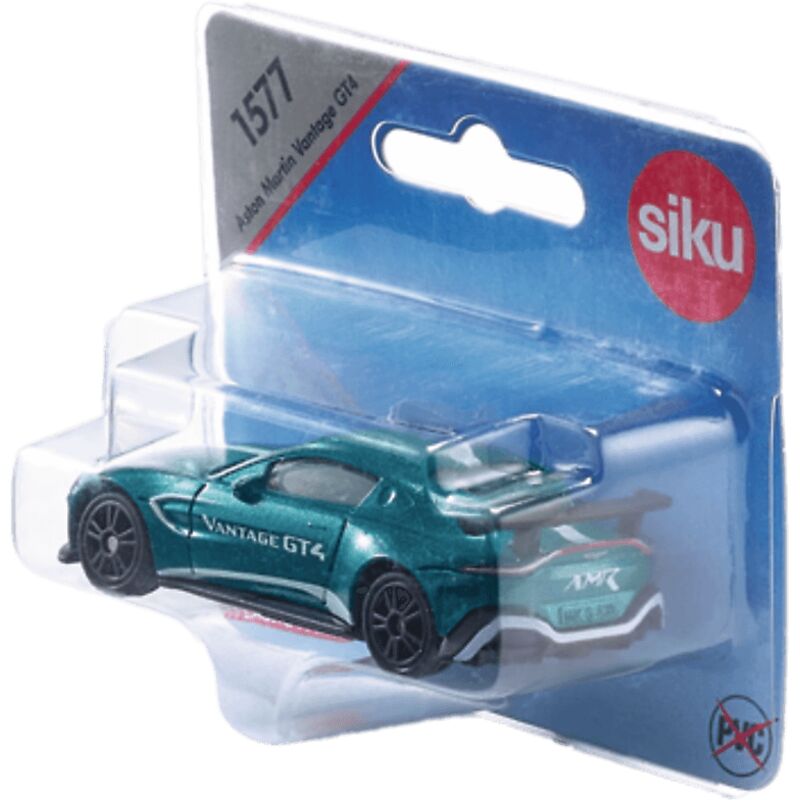 Siku 1577 Aston Martin Vantage GT4Il nome: una leggenda. La versione: racing deluxe. Stiamo parlando nientemeno che dell'Aston Martin Vantage GT4. Con una dinamica migliorata e più potenza grazie al nuovo motore V8 da 4,7 litri, questa impressionante vettura sportiva mostra ai suoi rivali e concorrenti sui circuiti da corsa di questo mondo le luci posteriori. La sorprendente vernice Long Beach Blue Metallic con ampia stampa bianca sui lati, sul cofano, sulla parte posteriore e sul tetto rendono questo modello un vero gioiello con un alto fattore "must-have". Il vetro trasparente offre una buona visuale dell'interno (in plastica), che è accuratamente dettagliato in un sottile nero. I fari e i fanali posteriori sono stampati fedelmente all'originale. In combinazione con i cerchi neri sportivi con battistrada in gomma, il sorprendente spoiler posteriore gigante completa l'aspetto unico della Aston Marting Lagonda (AML) Racing Series. La carrozzeria di questo sogno da corsa è realizzata