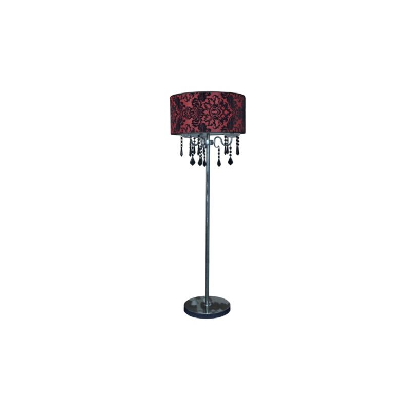 Unica nel suo genere: una semplice base in metallo e un paralume in tessuto rosso estremamente decorativo con motivo nero;