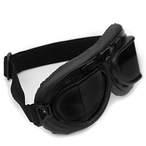 Astra Depot WWII RAF Vintage Pilot Style Black Frame Motorcycle Café Racer Cruiser Touring Helmet Goggles by Astra Depot