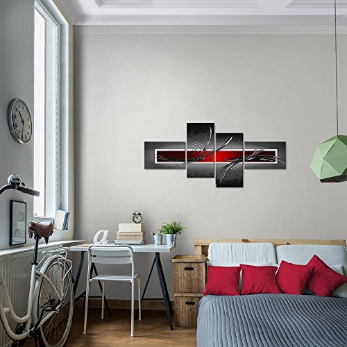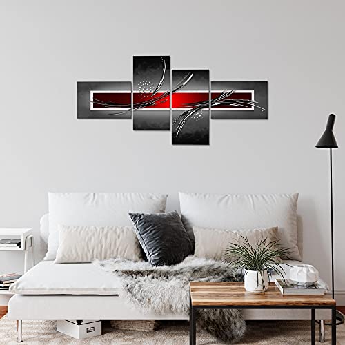 Runa Art Astratto Quadri Moderni - Made In Germany - Murali Grigio Rosso Nero 4 Pezzi 102542a