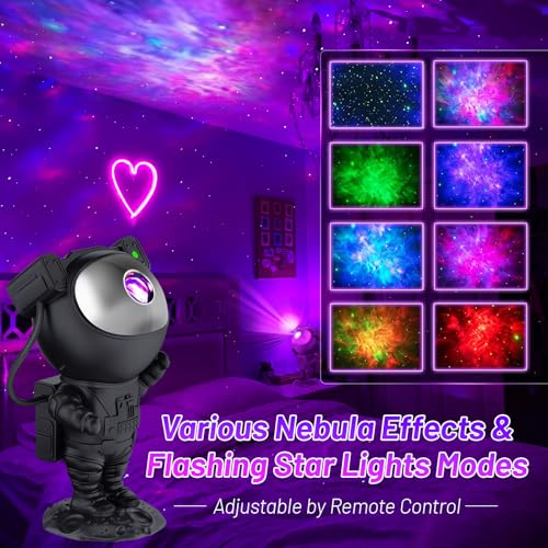 Astronauta Cielo Stellato Galassia Proiettore,Proiettore Stellare Astronauta con timer e telecomando,Testa Ruotabile a 360°,Luminosità e Velocità Regolabili,Regalo per Bambini e Adulti,nero freddo