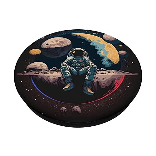 Un astronauta in una tuta spaziale sulla luna, galassia spaziale PopSockets PopGrip Intercambiabile