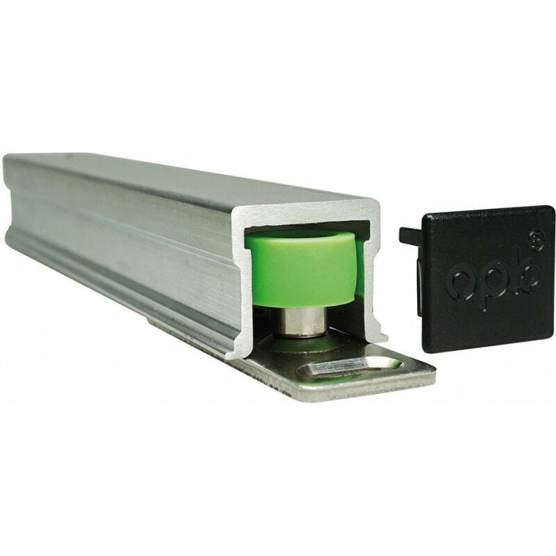 OPK Kit astronave W per porta in legno - Con innovativa serranda a due vie - Con rullo di scorrimento a sfera con spazzola di pulizia integrata, per un funzionamento ottimale e silenzioso - Con guida a pavimento a sfera per un funzionamento confortevole senza vibrazioni e lama di guida per ante scorrevoli standard - Può essere montato sotto il soffitto Contenuto: Set incluso con elementi di base per la configurazione della porta. Binario di scorrimento 33 mm. Guida 1250 mm.
