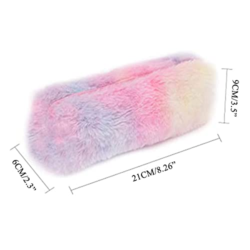 2 astucci carini per matite da 21 cm, in peluche, arcobaleno, per la scuola dei bambini