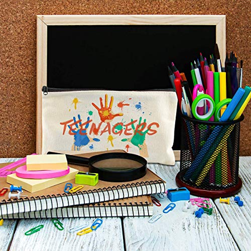 ✎DESIGN DI APERTURA: Borse fai-da-te in tela bianca L'apertura migliorata è più grande del vecchio design per rendere più facile estrarre la cancelleria dall'astuccio, la cerniera migliorata ha le stesse dimensioni del cursore per cerniera.