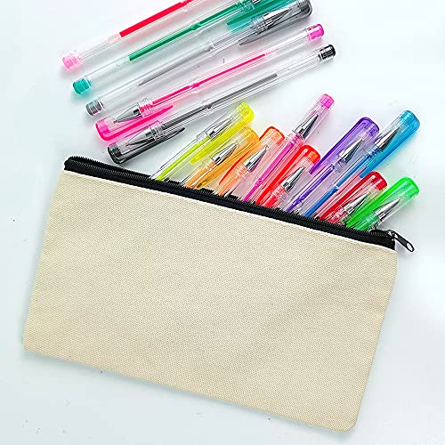 Astuccio in Tela Bianco,12 pezzi Borse per trucco in tela Astuccio per Matite Fai Da Te Pochette con Cerniera per Cosmetici,Deposito Cancelleria