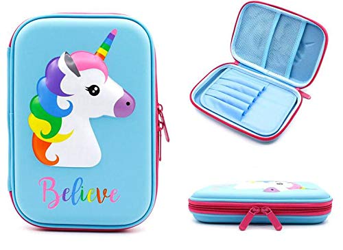 Astuccio per cancelleria a forma di unicorno per bambine, astuccio per la scuola, portapenne, scocca, duro, con chiusura lampo (senza penna) blu