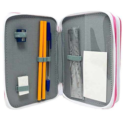 Astuccio 3 cerniere astuccio a 3 piani Minnie per la scuola, per bambina, astuccio da 43 pezzi, colore: rosa