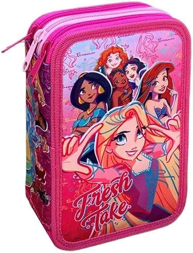Astuccio Completo Scuola, Disney, Principesse, 3 Zip, multiscomparto, Completo 44 Pezzi, Colori Giotto, 20 x 13 x 6 cm