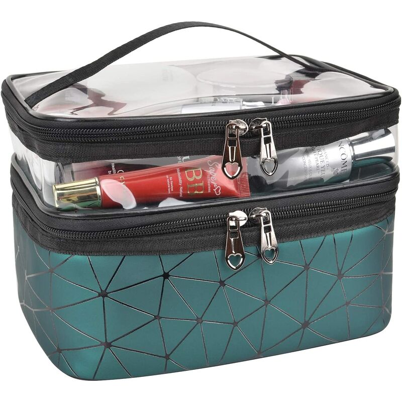 MATERIALI PREMIUM: Questa borsa per cosmetici può essere utilizzata anche come borsa per cosmetici. La sua superficie è realizzata in materiale impermeabile di alta qualità. Design a strati: diverso dalla precedente borsa per cosmetici a telaio singolo. Ha un design multistrato per un facile smistamento e conservazione. Facile da trovare: lo strato superiore è realizzato in materiale trasparente, così puoi vedere chiaramente cosa è conservato all'interno. Portatile: di medie dimensioni, facile da riporre in valigia o in un tavolo. Colore verde