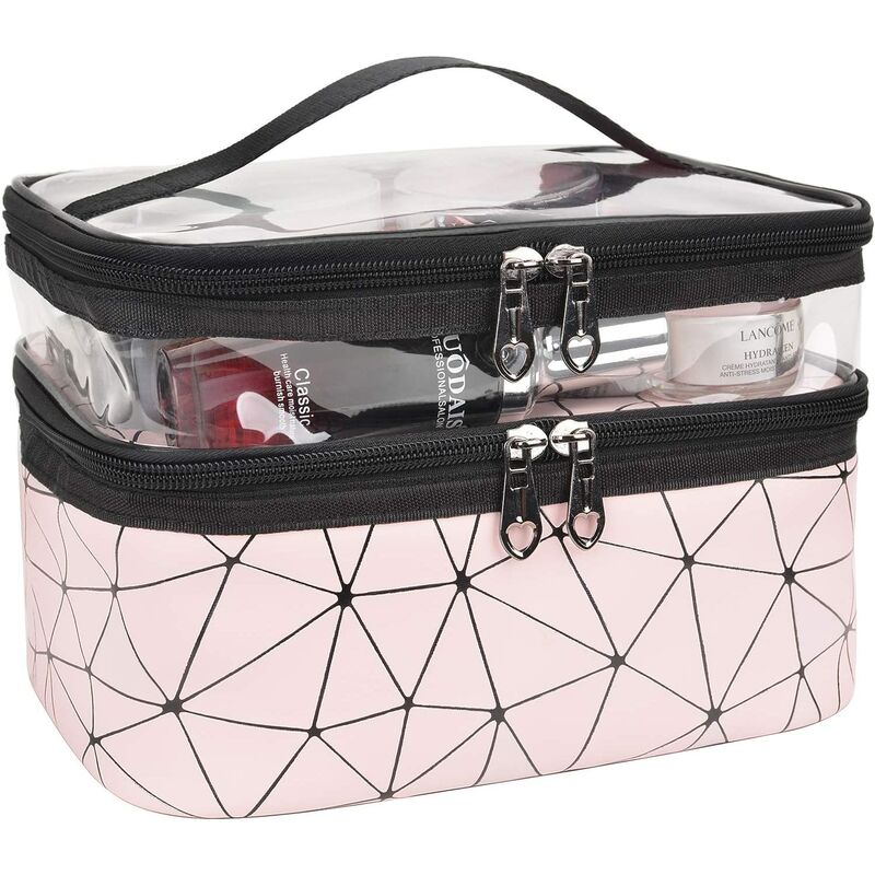 MATERIALI PREMIUM: Questa borsa per cosmetici può essere utilizzata anche come borsa per cosmetici. La sua superficie è realizzata in materiale impermeabile di alta qualità. Design a strati: diverso dalla precedente borsa per cosmetici a telaio singolo. Ha un design multistrato per un facile smistamento e conservazione. Facile da trovare: lo strato superiore è realizzato in materiale trasparente, così puoi vedere chiaramente cosa è conservato all'interno. Portatile: di medie dimensioni, facile da riporre in valigia o in un tavolo. Colore rosa