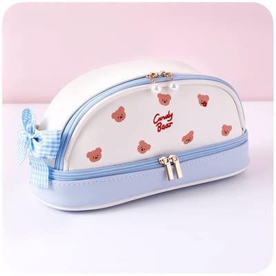 Astuccio Estetico con Motivo Animato Y2K Matita Titolare Preppy Cancelleria Kawaii Matita Pouch Cutecore Forniture, Orso blu.
