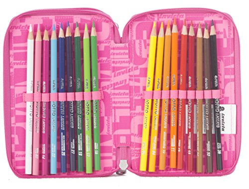 ASTUCCIO 3 ZIP - INVICTA - LOGO - attrezzato con penne, matite, pennarelli ... Rosa