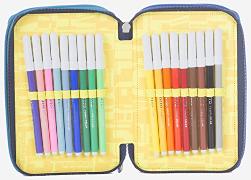 ASTUCCIO 3 ZIP INVICTA - KUPANG - Con penne, matite, pennarelli ... Blu