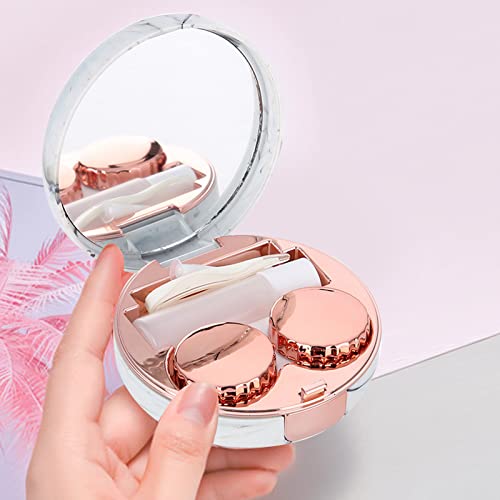 L'interno include uno specchio incorporato, un bastone per lenti a contatto, una pinzetta e una bottiglia di soluzione. La cassa ha due lati, design a doppio uso, uno per lenti a contatto e accessori e l'altro per specchi.