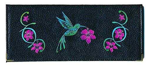 Syl'la - Astuccio per libretto degli assegni, lungo, in cuoio, da donna, colore: Nero, Noir Colibri Rose (Nero) - chequierlongcuirnoir-colibri