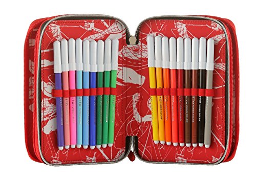 Astuccio 3 Zip Marvel Spider-Man, Rosso Blu, Con materiale scolastico: 18 pennarelli e 18 pastelli Giotto, penna Tratto Cancellik...