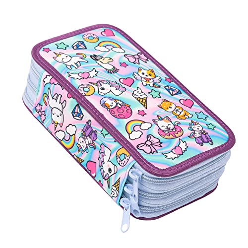 Astuccio Matita con 3 scomparti per Ragazze caso Portapenne Pennarelli ed Accessori Scuola Holo Sweet Adesivi [150]