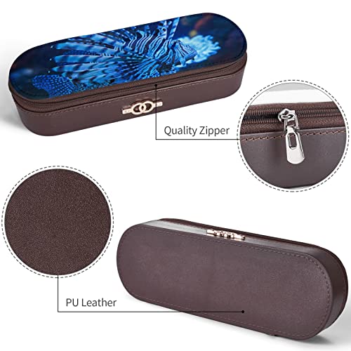 Astuccio per matite colorato con pesce leone in quadri, astuccio per matite in pelle di grande capacità
