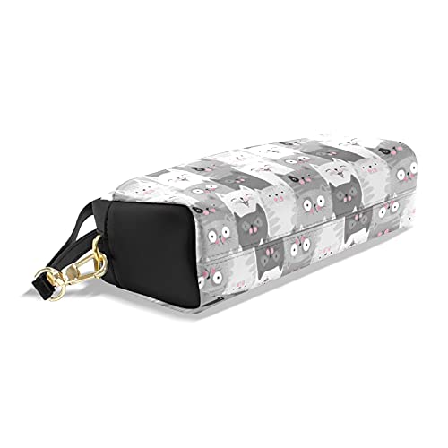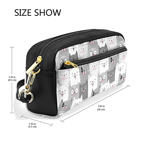 Astuccio per matite e cosmetici, in pelle PU, con gatto, colore grigio, bianco, con cinturino da polso, per ragazze e donne