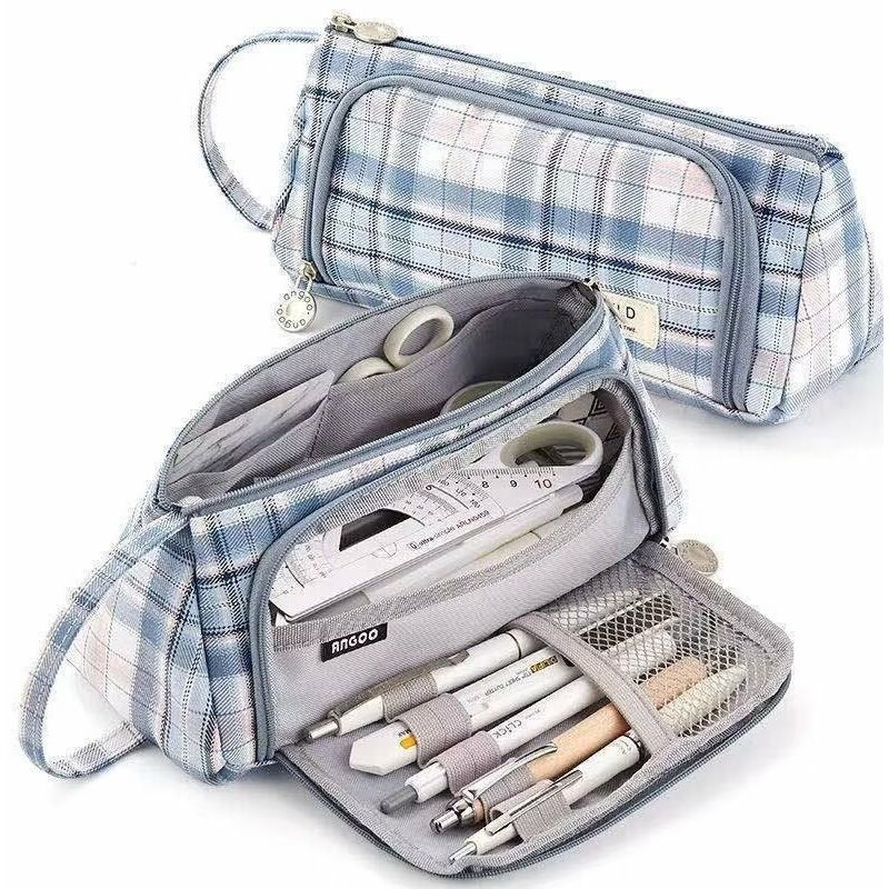 Ampio spazio di archiviazione:Dimensioni: 21 x 8 x 11,5 cm, consentendo fino a 70 penne/matite e altri gadget. Spazioso spazio per matite, righello angolare, calcolatrice, forbici, carte, cavi, power bank, cellulare, ecc. (Le penne non sono incluse.) Design trapezoidale con manico:1.Si apre lateralmente o dall'alto 2. Conserva piccoli appunti, carte e biglietti importanti in uno scomparto di facile lettura. 3.Non è solo un astuccio, ma può essere utilizzato anche per altri scopi, come una custodia da viaggio o un astuccio per cosmetici. Multifunzione: questo astuccio con due cerniere può essere utilizzato anche come custodia artigianale, custodia, borsa per cosmetici, borsa per il trucco da viaggio per donne e ragazze. I piccoli manici laterali lo rendono facile da trasportare e le sue dimensioni compatte si ripiegano facilmente in quasi tutte le borse da portare con te. Alta qualità: tela 100% nuova, materiale resistente con due cerniere lampo robuste, rende il astuccio più durevole