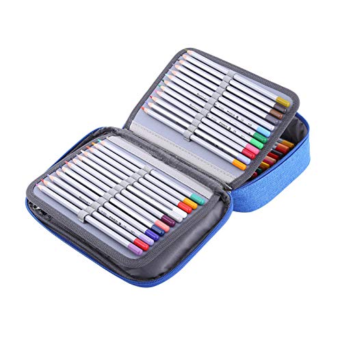 Astuccio per Matite 72 Slot, Portamatite Multifunzione Pieghevole Colorate Borsa Portapenne con Cerniera di Grande Capacità Ampia Multifunzionale Cancelleria Porta Tasca Custodia Organizzatore (Blu)