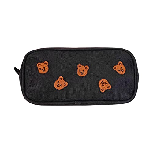 Astuccio per matite con orso ricamato, grande astuccio per matite in tela con cerniere, astuccio multifunzione in tessuto morbido per ragazzi e ragazze