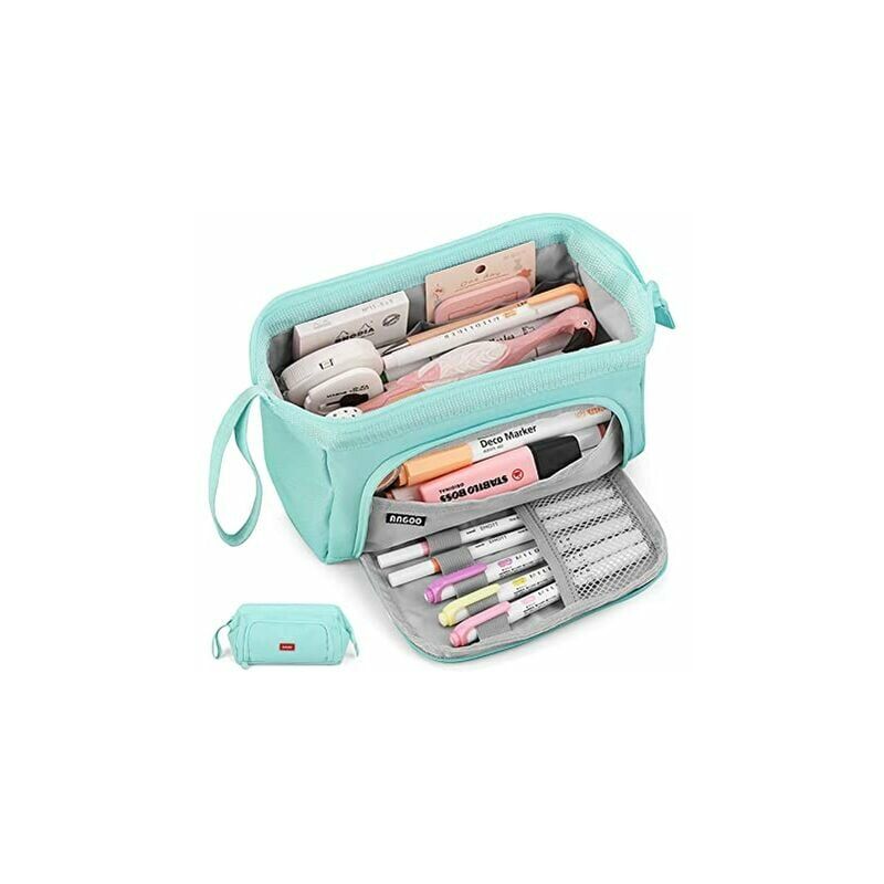 Le grandi scatole portaoggetti per ragazzi e ragazze sono abbastanza grandi da contenere tutta la cancelleria. Il grande astuccio per bambini è ben organizzato e offre spazio sufficiente per penne, matite, temperamatite, gomme, forbici, calcolatrici e altri accessori. Astuccio multifunzionale dal design unico con un anello di ferro metallico nella parte ingresso, può essere utilizzato come portamatite. Astuccio per bambini con ampi scomparti, una tasca laterale e una tasca a rete che si apre sul lato. Conserva piccoli appunti, carte e biglietti importanti nella tasca laterale. La scatola multifunzionale per la cancelleria della scuola blu non è solo una scatola per la cancelleria, ma può anche essere utilizzata come astuccio da viaggio, portamatite, trousse per cosmetici, una cassetta degli attrezzi e altri usi. Maniglia per il trasporto La borsa della cancelleria ha una maniglia aggiuntiva sul lato per un facile trasporto dell'astuccio, questo prodotto non contiene penne o matite.
