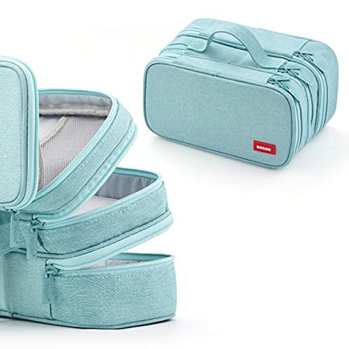 XKUN Astuccio per Matite 3 Strati Penna Sacchetto Matita Cassa Multi Storage Grande Maniglia Busta Organizzatore per Cartoleria Viaggio Cosmetico Spazzole Viaggio-Green
