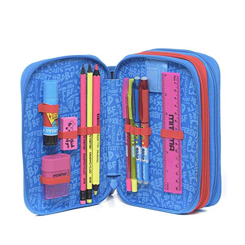 Design italiano, struttura resistente, grafiche bambino sbalorditive. Astuccio adatto alle scuole elementari. Astucci da coordinare con zaino e diario. L'astuccio triplo consente di organizzare penne, pennarelli, matite e altri oggetti di cancelleria con facilità.