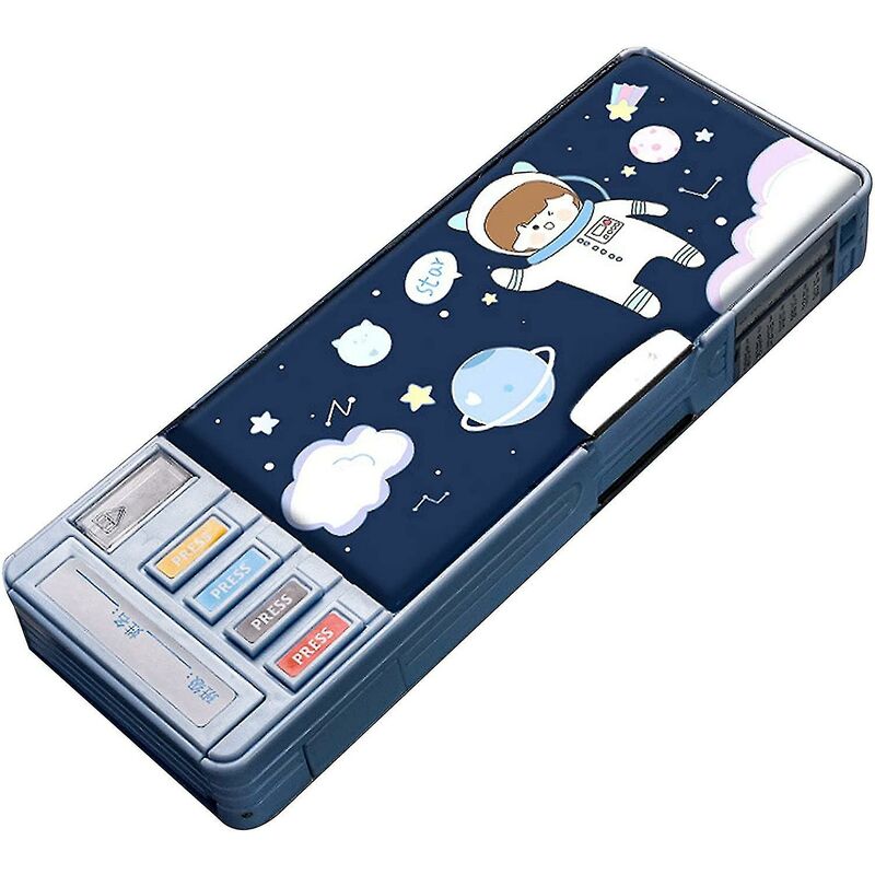 Pulsanti automatici 4 pulsanti estraggono una forbice, un temperamatite, una lettiera per graffette e un porta matite 5. Un sacco di sorpresa e divertimento. Caratteristiche uniche Copertura magnetica per un facile accesso a tutta la cancelleria. Una copertina rigida offre una buona protezione per la tua cancelleria preferita. ACCESSO FACILE: una copertina rigida con chiusura magnetica rende l'accesso all'astuccio per le matite un gioco da ragazzi, mantenendo tutti i simpatici materiali scolastici belli e al sicuro. Dimensioni astuccio: 9,6 * 3,9 * 1,4 pollici/24,5 * 10 * 3,5 cm Questo è l'accessorio che ogni studente deve avere, sono le cose necessarie nella vita scolastica