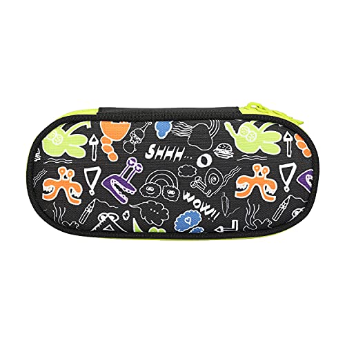 Astuccio ovale Doodle boy nero e verde. Perfetto per tutte le scuole