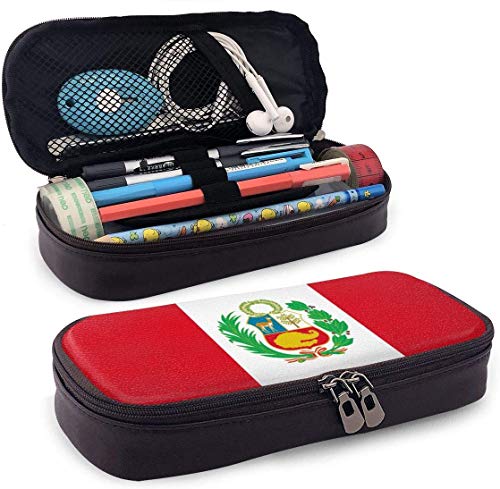 Astuccio in pelle Custodia grande portamatite Trucco con cerniera Astuccio per penna Bandiera Perù