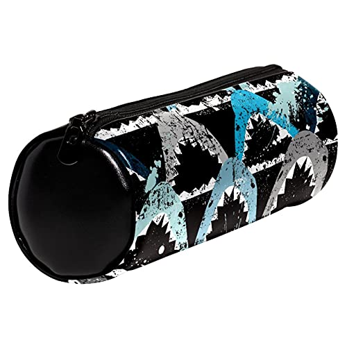 Astuccio in pelle con squalo, a bocca aperta, blu, grigio, per penne, matite, portamonete, cosmetici, per studenti, cancelleria, scuola, lavoro, ufficio