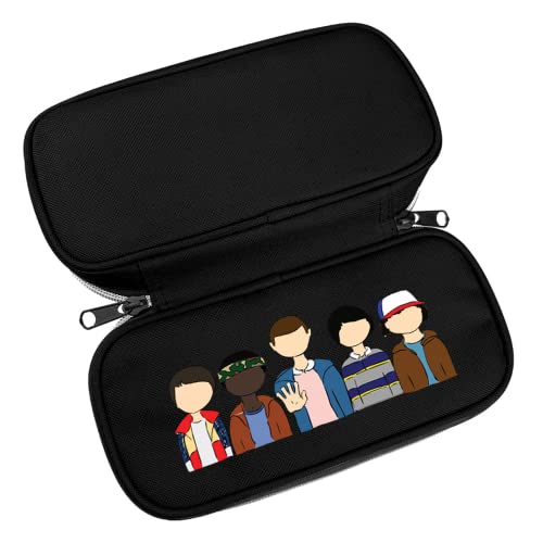 ST - Astuccio per penne a prova di acqua, con chiusura a cerniera, design di grande capacità, per ufficio, cancelleria, organizer per scuola adolescente, tela con doppia cerniera, colore: Nero (B)