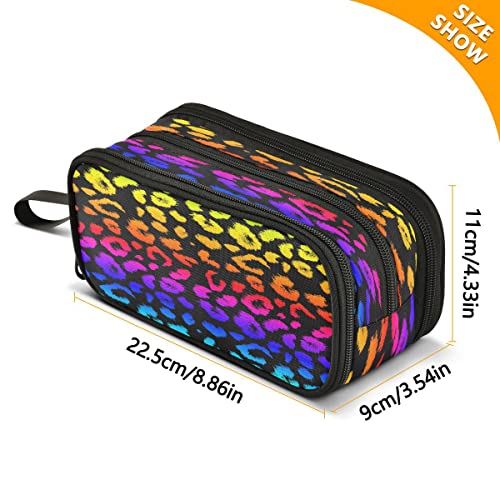 Astuccio per penne a 3 scomparti con stampa di ghepardo arcobaleno leopardato con stampa animalier e 3 scomparti per penne e penne, per scuola e ragazzi