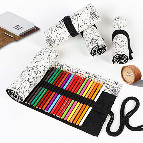 Astuccio in Tela Portamatite,BETOY Roll Up Portapenne 72 Matite Accessori Roll Tela Matita Wrap per Ufficio,Studenti Cancelleria Stoccaggio Borsa Retro Stile,Costellazione