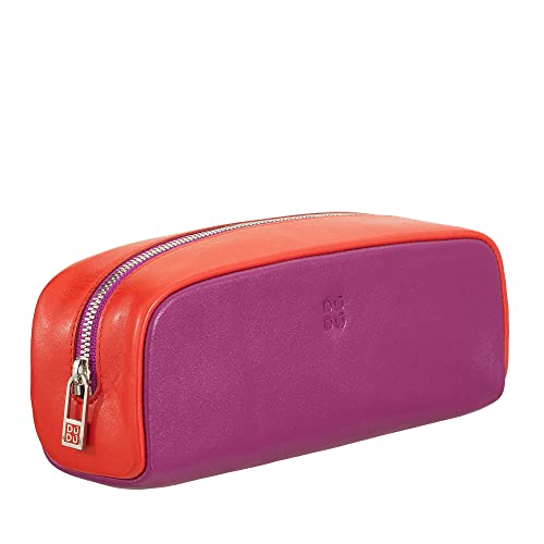 DUDU Astuccio Portapenne Portamatite Grande in Vera Pelle Multicolore con Cerniera Zip Fucsia
