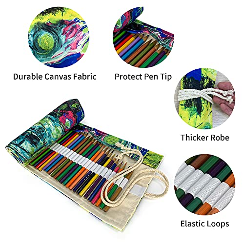 Astuccio Portapenne di Tela, 72 Fori Sacchetto Della Matita Arrotolabile, Tela Matita Wrap Astuccio Cartoleria Organizer per Scuola, Ufficio, Studenti, Artista