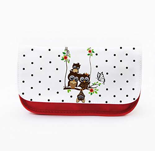 Astuccio portapenne Astuccio Portapenne Ventriquattore da donna Gufi Eulchen su altalena bianco nero pois F070