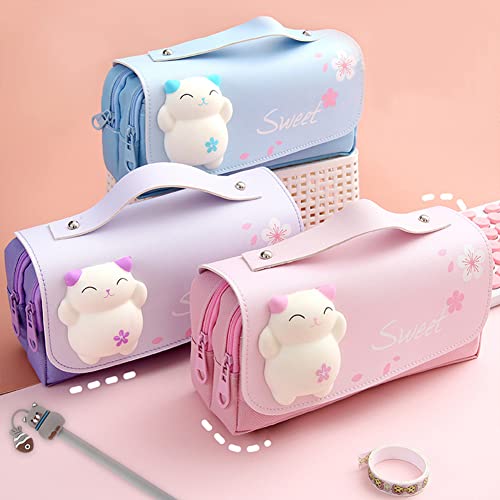 Astuccio scolastico per ragazze, astuccio per matite di gatto animale con 4 penne sacchetto di cancelleria in tela per bambini grande capacità per studenti adolescenti ragazzi multicolore, Rosa, Set