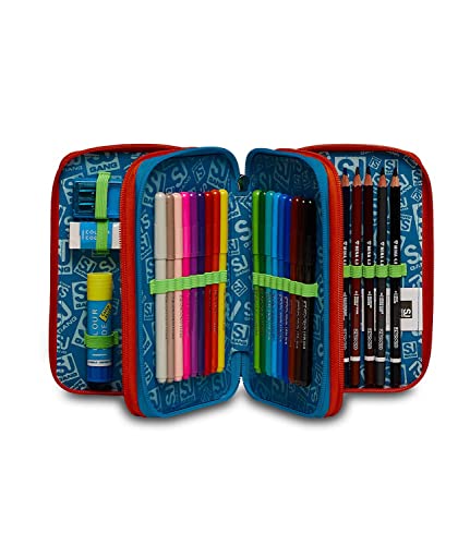 SJ Gang Astuccio Scuola 3 Zip Bambino - Triplo Scomparto TRICKFLIP BOY - Con Penne, Matite, Colori - Nero