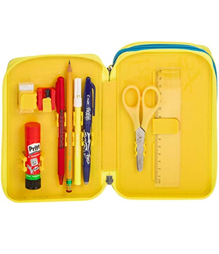 ALTRE CARATTERISTICHE: Triplo scomparto. CONTENUTO: 1 penna a sfera cancellabile blu, 1 penna a sfera rossa, 18 pastelli, 18 pennarelli, 1 colla stick, 1 matita, 1 evidenziatore, 1 gomma, 1 temperino,1 righello trasparente, 1 forbice.
