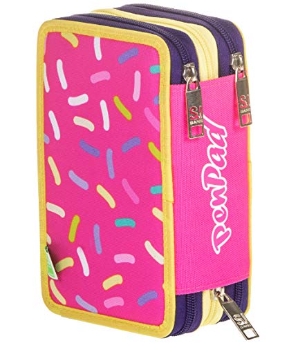 ASTUCCIO Scuola PEN PAD - FACCE DA SJ - Rosa - 3 scomparti - Con contenuto: pennarelli matite ecc.